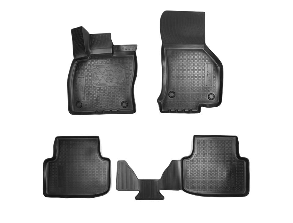Covorase auto premium stil tavita, special create pentru masina ta SKODA OCTAVIA 3 III fabricatie de la 2012+, prima imagine a produsului – cea reala, fabricate din cauciuc de cea mai buna calitate, insotite de clipsuri pentru prinderea in podea si de garantia calitatii.